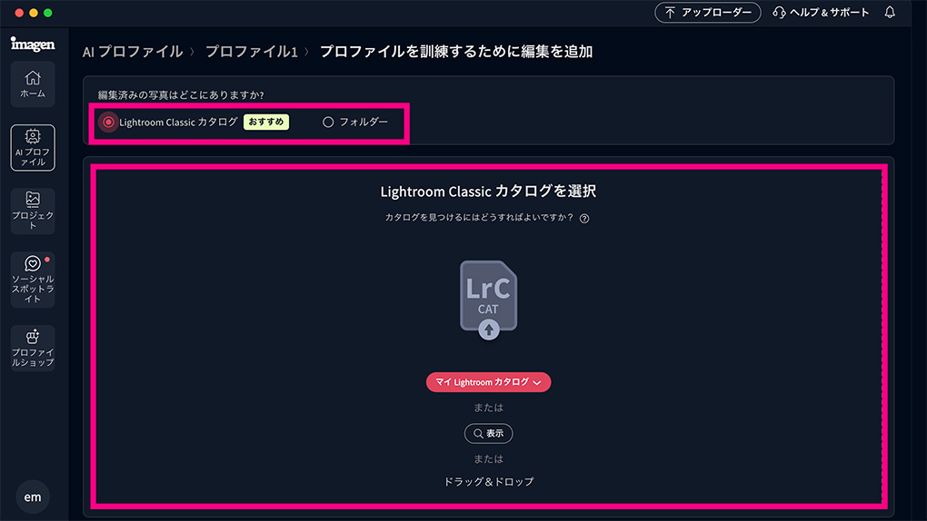 AIプロファイルを使用して、Imagenで一括編集する手順を説明します。