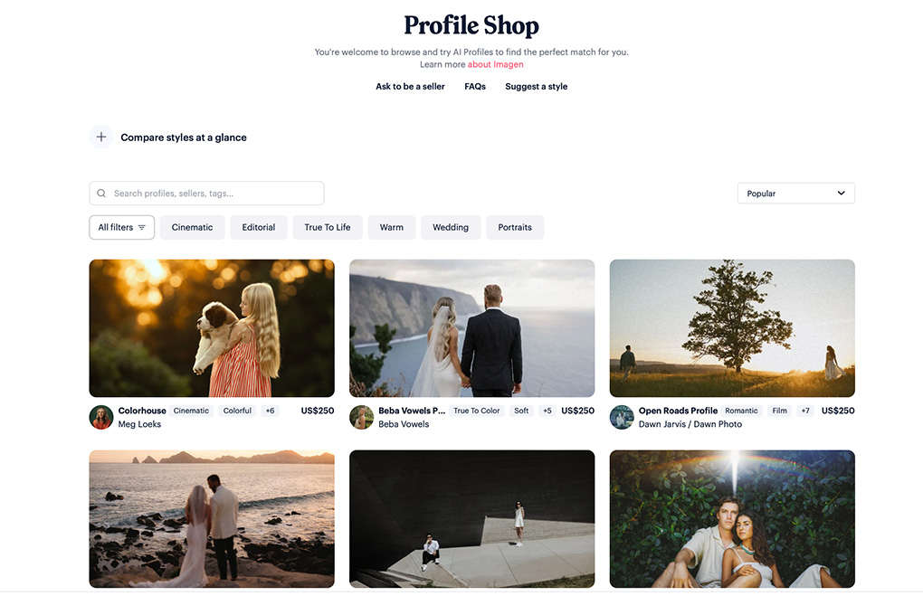 プロファイルショップにアクセスすると世界中の写真家が作成したAIプロファイルが購入できます。