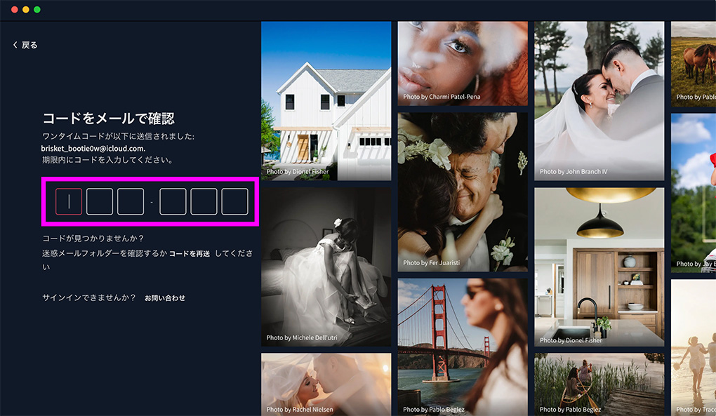 ワンタイムコードがメールで送られてくるので入力します。