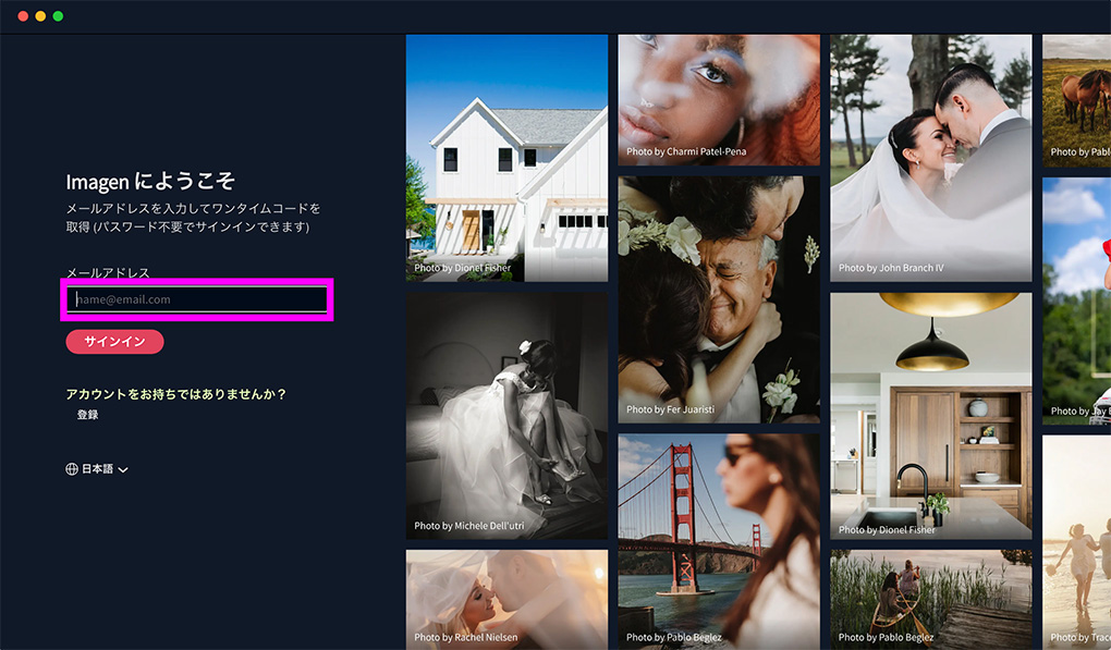 Imagenの使用を開始するためにまず簡単な登録が必要となります。